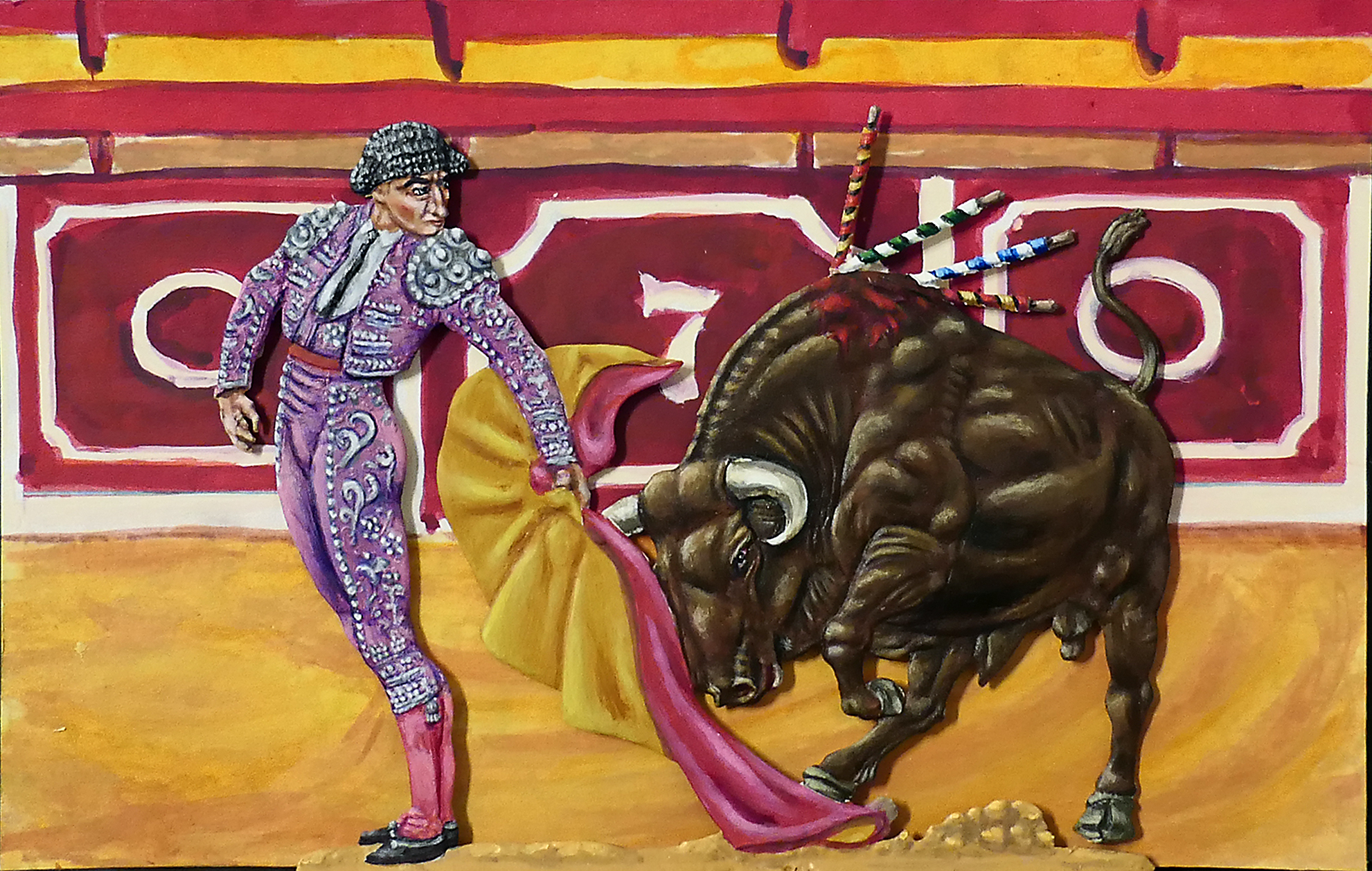 Nice work, Enrique! Love the colors and the painting of the bull.