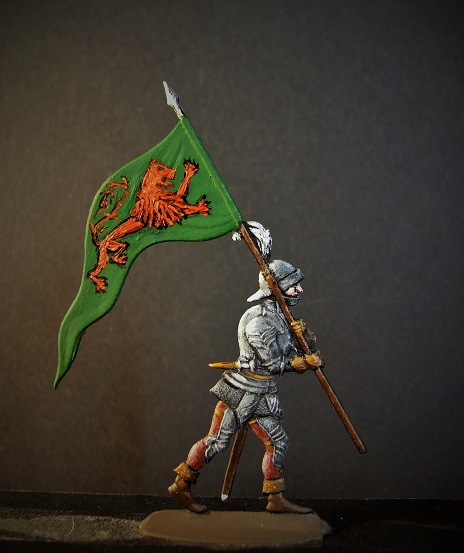 Since the Blum-set provides no Charles the Bold figure in fleeing phase of the battle - however Kollbrunner has one, based on the painting of E Burnand - I had to prepare a slightly modified layout of the Gottstein's Karl der Kühne set figure KK-033.